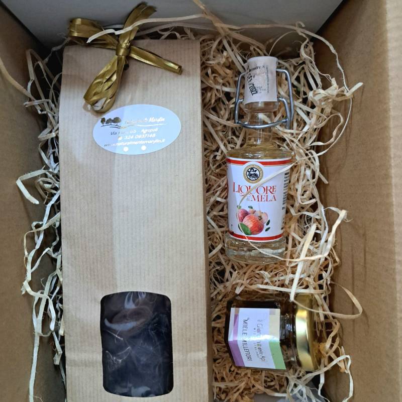 Questa box contiene: Miele del Cilento mille fiori, liquore di mela